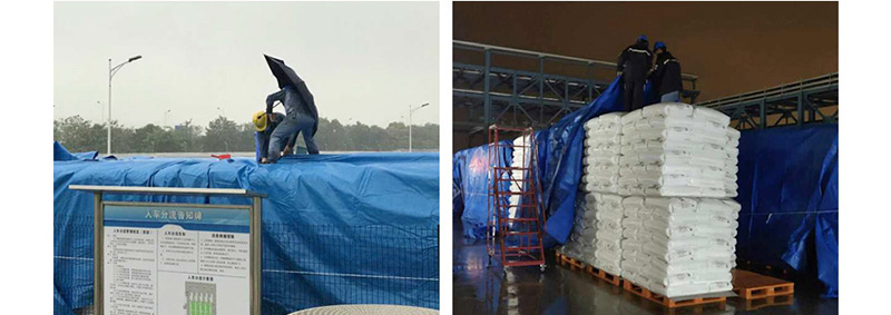 針對(duì)近期天氣變幻莫測、時(shí)晴時(shí)雨的情況,青年戰(zhàn)疫突擊隊(duì)采用“打游擊”的方式進(jìn)行移庫工作,雨來我退,雨停我移。雨大我躲,雨小我出。2月13日晚,天空突然飄起了雨絲,部分剛轉(zhuǎn)移出庫的產(chǎn)品還未來得及蓋上“雨衣”,青年戰(zhàn)疫突擊隊(duì)成員冒雨迅速給轉(zhuǎn)移出庫的產(chǎn)品蓋上防水帆布。隨著下游企業(yè)陸續(xù)復(fù)工復(fù)產(chǎn),這場“游擊戰(zhàn)”的勝利指日可待。