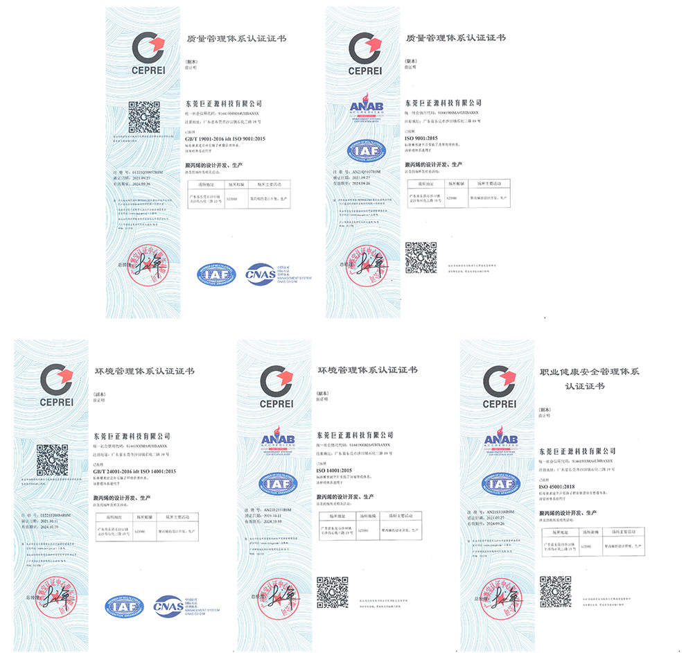 近日,巨正源科技公司成功獲得ISO9001質量管理體系、ISO14001環境管理體系及ISO45001職業健康安全管理體系的認證證書,標志著公司在“標準化、規范化、精細化”管理方面邁上新臺階,為進一步提升企業管理水平、增強企業核心競爭力奠定堅實基礎。